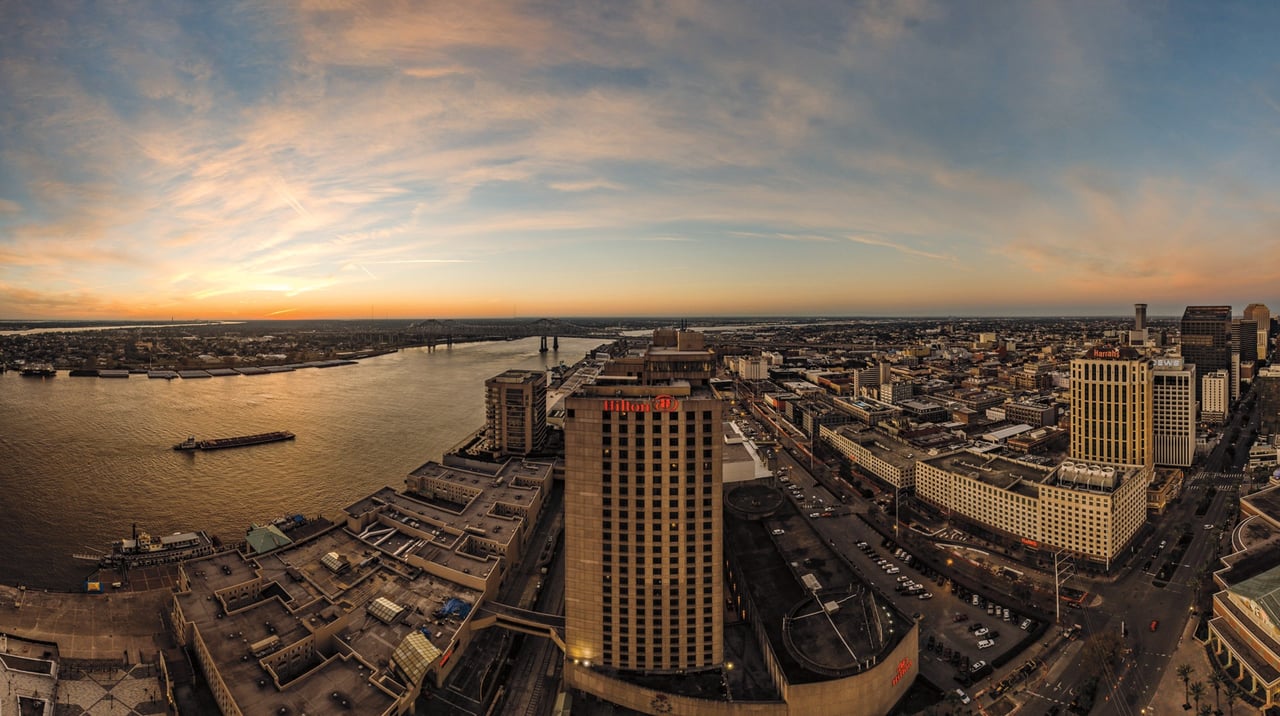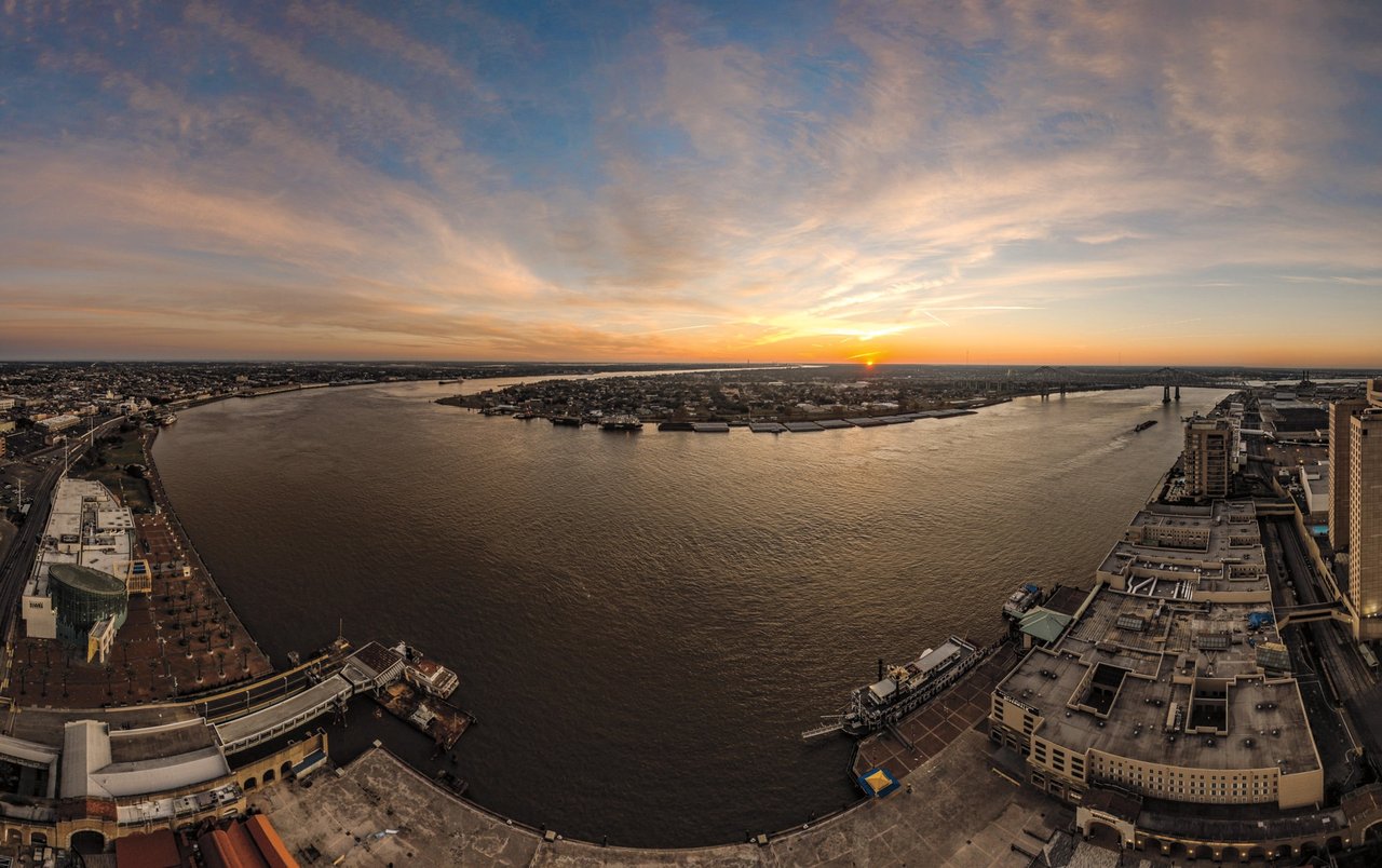 Whether facing upriver toward the Garden District, up Canal Street and over the Central Business District, out to the French Quarter or downriver to the Gulf, the views are unimpeded.
